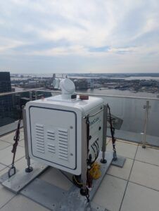 Faculty, staff, and students in the Departments of Earth and Planetary Sciences and Mechanical Engineering at Johns Hopkins University use a scanning lidar measure and understand the winds in Baltimore and beyond. This laser device sends an eye-safe laser beam into the atmosphere to measure the motion of dust particles.  This device lets researchers measure winds and atmospheric turbulence. These data are important for understanding the winds in Baltimore and how they change because of urban structures.